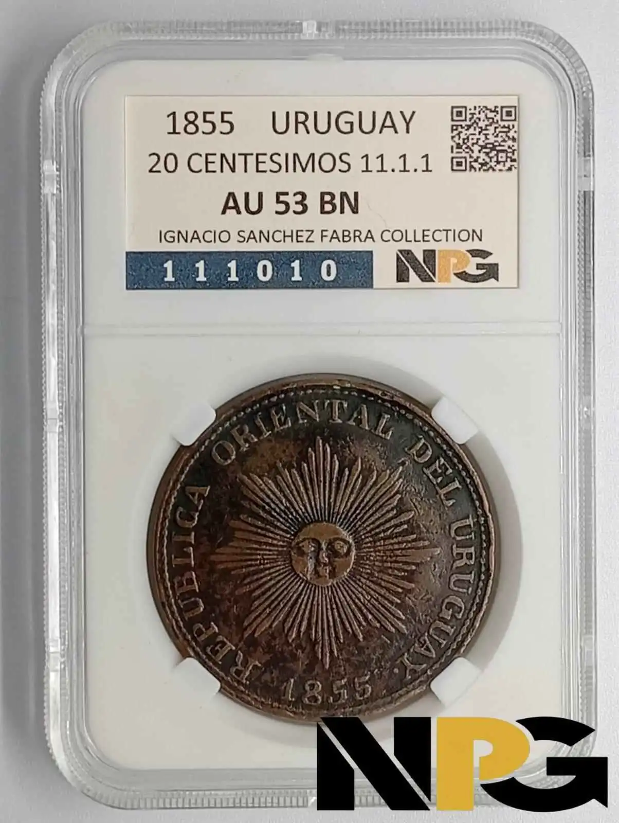 1855 Uruguay 20 Centésimos 11.1.1